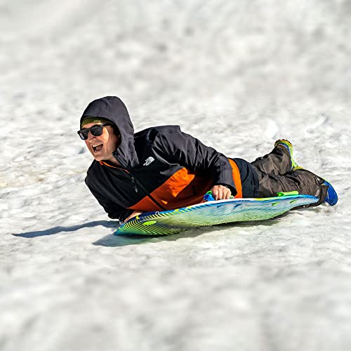- Contoured and engineered for Snow Fun - The Premium snow sled features a scooped deck that allows improved steering vs. hard plastic sleds or flat foam sleds. The rails are slightly raised for easy grip with gloves and deck grooves improve grip to the sled. Ride sitting or laying down. Perfect sized sled for one adult or youth. Smaller youths can fit up to two per sled with the four handle design and generous width.