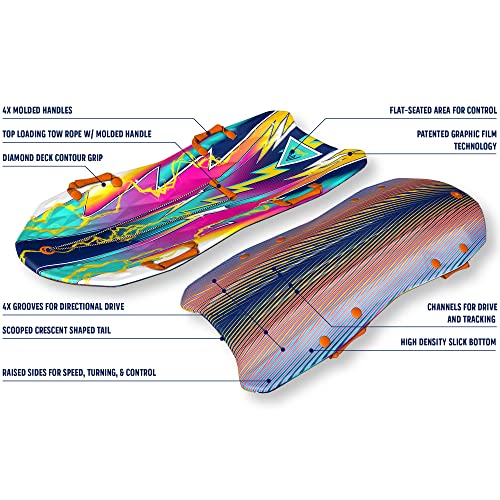 - Channel Contour Bottom Slick - Each snow sled features an exclusive contoured channel bottom for directional drive and speed as well as providing stiffness to maintain board shape.