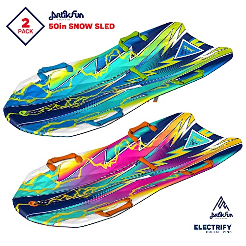 Artikfun Premium Recreational Winter Foam Snow Sled 2-Pack | Tow Rope and Handles | Sized for Youth and Adults | Contoured Deck Design | 50in-127cm Design Length |