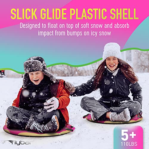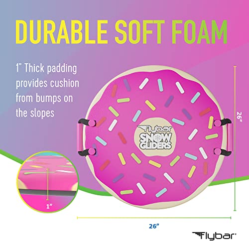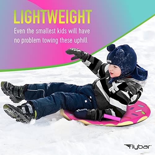 Flybar Snow Sled for Kids - Foam Saucer Disc Sled, Ages 6+, Easy Grip Handles, Durable Slick Bottom & PE Core Build, Lightweight Sleds for Kids, Snow Toys for Kids, Up to 110 lbs, 26" - Pink Donut
