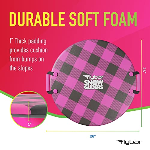 Flybar Snow Sled for Kids - Foam Saucer Disc Sled, Ages 6+, Easy Grip Handles, Durable Slick Bottom & PE Core Build, Lightweight Sleds for Kids, Snow Toys for Kids, Up to 110 lbs, 26" - Pink Plaid