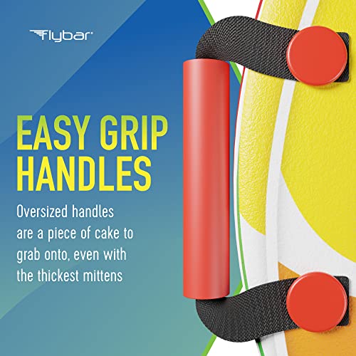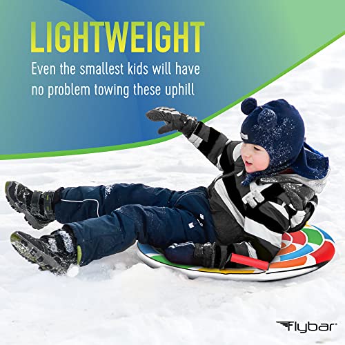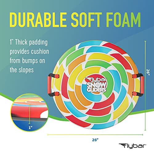 Flybar Snow Sled for Kids - Foam Saucer Disc Sled, Ages 6+, Easy Grip Handles, Durable Slick Bottom & PE Core Build, Lightweight Sleds for Kids, Snow Toys for Kids, Up to 110 lbs, 26" - Rainbow Swirl