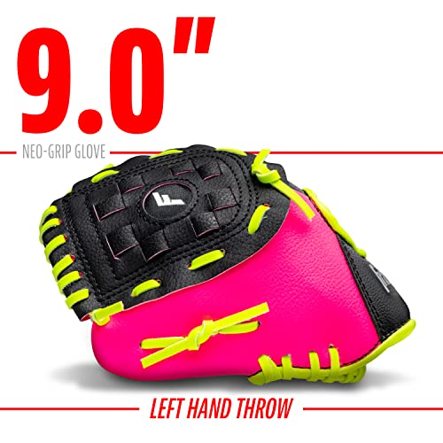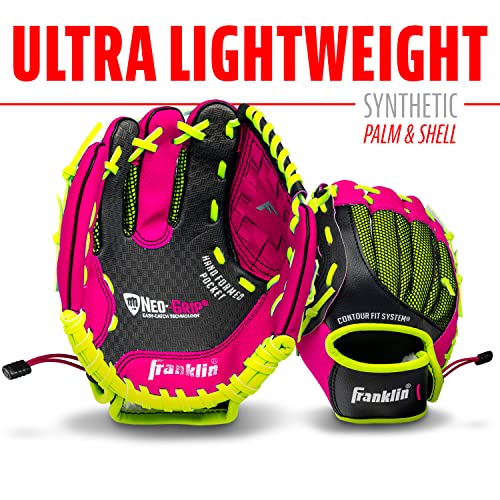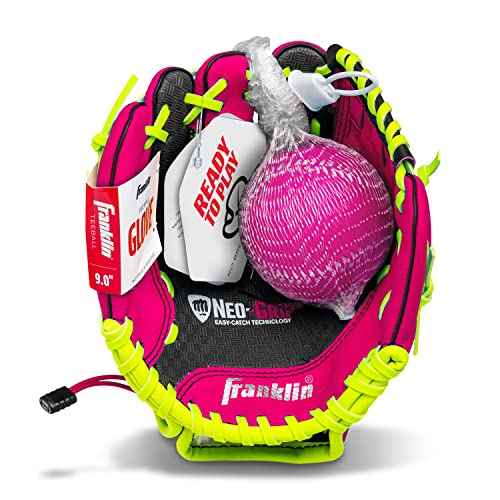 Franklin Sports Teeball Glove - Left and Right Handed Youth Fielding Glove - Neo-Grip - Synthetic Leather Baseball Glove - 9.0 Inch Left Hand Throw - Ready To Play Glove with Ball - Pink