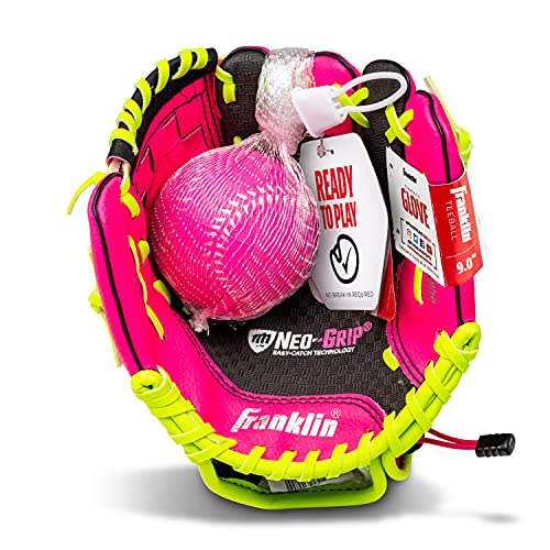 Franklin Sports Teeball Glove - Left and Right Handed Youth Fielding Glove - Neo-Grip - Synthetic Leather Baseball Glove - 9.0 Inch Right Hand Throw - Ready To Play Glove with Ball - Pink