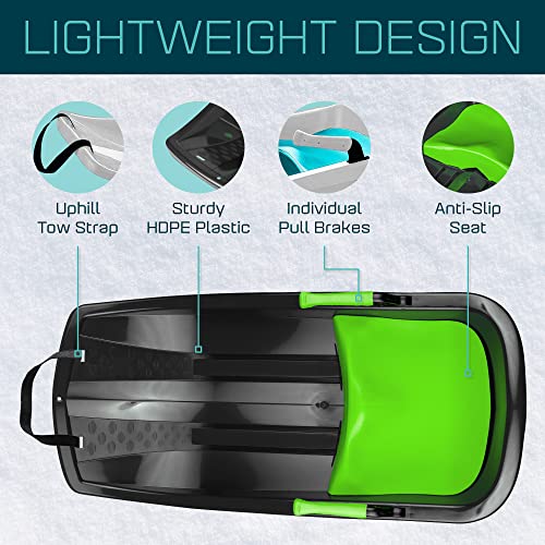 - Kids snow sled with easy-to-reach brake handles on both sides of the sled with comfortable functionality. Safe and easy way to race down the winter slopes.
