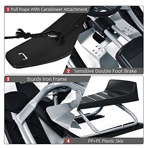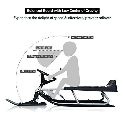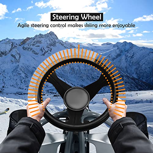 - 【Stylish Go-kart Racing Design】 Unlike the traditional ski board, this steering ski sled is designed in the go-kart appearance, catering to dream of being a race driver and getting thrills from nature. And the widened large seat also offers the optimal driving experience.