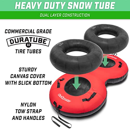 - HEAVY-DUTY CONSTRUCTION: Two reinforced DuraTube tire tubes enclosed by a premium canvas cover with a smooth coated bottom for sledding; Stronger and longer lasting than cheap vinyl snow tubes and better protection from rocks, branches, and obstacles