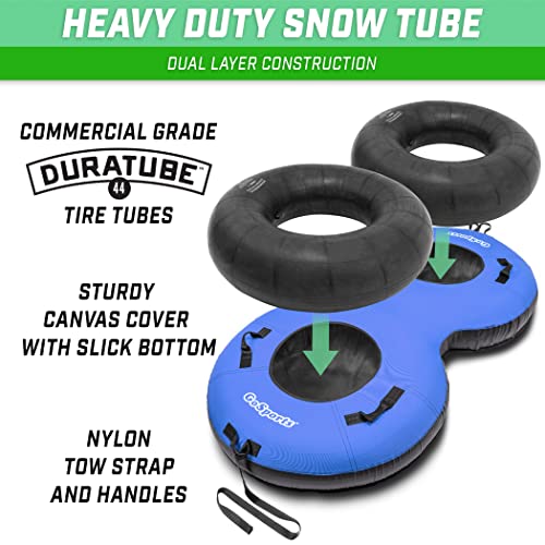- HEAVY-DUTY CONSTRUCTION: Two reinforced DuraTube tire tubes enclosed by a premium canvas cover with a smooth coated bottom for sledding; Stronger and longer lasting than cheap vinyl snow tubes and better protection from rocks, branches, and obstacles