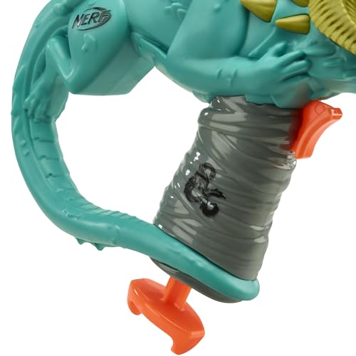 Details: The Nerf Dungeons & Dragons Rakor blaster brings home the fantasy of the D&D movie and roleplaying game. The dart blaster launches 2 Nerf Elite foam darts in a row for active play in outdoor games. It is inspired by the black dragon Rakor, who unleashes acid breath upon any adventurer in the Forgotten Realms who dares challenge him for his treasure. Your adventure through the magical world of D&D continues as you build your Nerf D&D collection of blasters and gear! (Each sold separately, subject to availability.) The blaster is easy to load and fire: Front-load 2 darts into the blaster, pull the priming handle, and pull the trigger to launch 1 dart in high-energy indoor and outdoor play. The blaster includes 4 Nerf Elite foam dartsmakes a great gift for kids 8 and up who love action play and fantasy toys. Eyewear recommended (not included). No batteries required. Copyright 2023 eOne and Paramount Pictures Corporation. All Rights Reserved. Copyright 2023 Wizards of the Coast. Hasbro and all related terms are trademarks of Hasbro.
