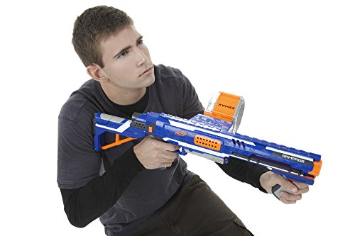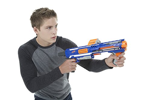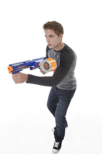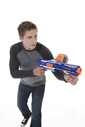 Details: Product Description When the mission calls for serious firepower, bring along the Nerf N-Strike elite Rampage blaster that packs a high-capacity 25-dart drum and comes with 25 official Nerf elite darts. Shoot a rapid-fire dart Storm at targets with the toy Blaster’s slam-fire action as you hold down the trigger and keep sliding the handle to unleash ALL 25 darts fast. The Rampage Nerf Blaster is manually operated -- no batteries required -- so you're in control as you Prime and fire by hand. This blue N-Strike elite blaster for kids, teens, and adults is designed for distance, sending darts Streaking through the air up to 90 feet (27 meters). The Nerf Rampage toy blaster comes with 25 official Nerf elite darts that are designed for distance, tested and approved for performance and quality, and constructed of foam with flexible, hollow tips so they're fun to blast -- and get blasted with -- indoors and outdoors. Nerf and all related properties are trademarks of Hasbro. From the Manufacturer It'S Time To Take Your N-Strike Battling To The Next Level With The Rampage Blaster. With A 25-Dart Drum Magazine, The Rampage Blaster Gives You An Incredible Rapid-Fire Blitz, Firing Revolutionary Elite Darts At A Range Of 75 Feet. Release A Storm Of Darts At Your Target By Sliding The Slam Fire Handle Repeatedly While You Hold Down The Trigger. The Drum Magazine Works With Other Clip System Blasters (Sold Separately), And The Elite Darts Work With Any Elite Blaster And Most Original N-Strike Blasters (Sold Separately). For The Final Word In Today'S Blaster Technology, You Need The Elite Customization And Interchangeable Parts Of The Rampage Blaster.