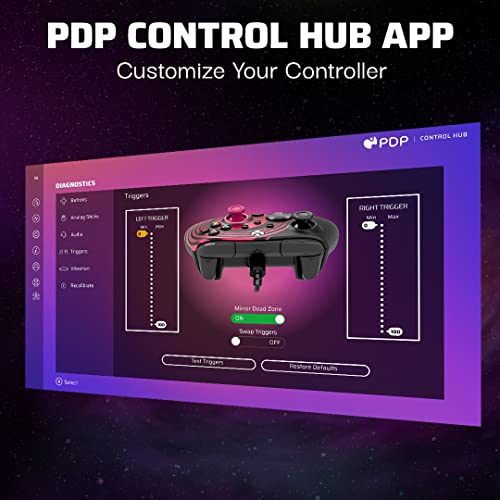 - CUSTOMIZE SETTINGS FOR YOUR BEST GAMEPLAY - Use the free PDP Control Hub App to re-map buttons, re-configure triggers, adjust dead zones, and more.
