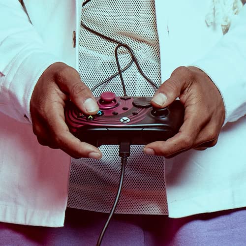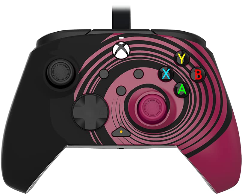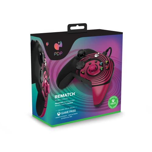 Details: Ready for a rematch? Take your enemies down again and again with the enhanced features and customizability of the Ruby Swirl REMATCH Advanced Wired Controller, officially licensed by Xbox. Rethink the way you game using the two programmable back buttons to map controller functions and take down ops quickly and efficiently. Enjoy improved accuracy with the textured grips, thumbsticks, and triggers. With the built-in volume controls on the D-pad and quick mic mute, you can make rapid-fire adjustments without ruining your immersion. Enhance your gaming experience further by customizing your controller on the free PDP Control Hub app. Re-map buttons, reconfigure triggers, adjust deadzones, update controller firmware, and more. Connect the included 8-foot USB-C cable to upgrade your gaming with the officially licensed REMATCH Advanced Wired Controller.