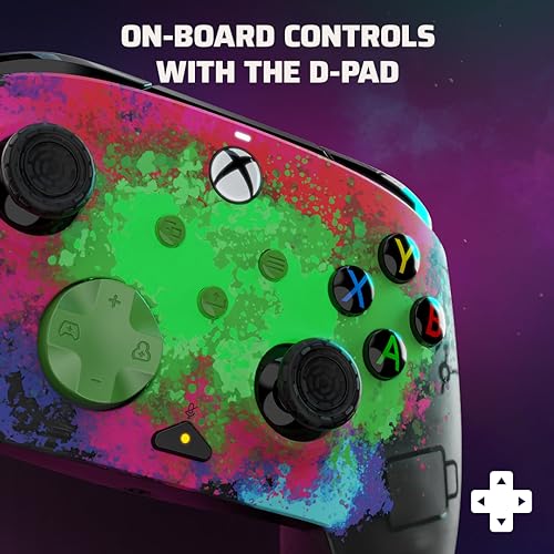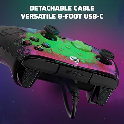 Details: Ready for a rematch? Take your enemies down again and again with the enhanced features and customizability of the Space Dust Glow in the Dark REMATCH Advanced Wired Controller, officially licensed by Xbox. Rethink the way you game using the two programmable back buttons to map controller functions and take down ops quickly and efficiently. Enjoy improved accuracy with the textured grips, thumbsticks, and triggers. With the built-in volume controls on the D-pad and quick mic mute, you can make rapid-fire adjustments without ruining your immersion. Enhance your gaming experience further by customizing your controller on the free PDP Control Hub app. Re-map buttons, reconfigure triggers, adjust deadzones, update controller firmware, and more. Connect the included 8-foot USB-C cable to upgrade your gaming with the officially licensed REMATCH Advanced Wired Controller.