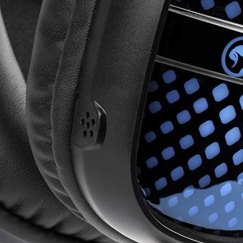 - Headset Specs - Sound: Stereo; Frequency Response: 20Hz - 20KHz; Speaker Size: 40mm; Microphone Type: Omnidirectional; Microphone Size: 6 x 5mm; Backlight: 7 Colors; Connectors: 2x 3.5mm Jack, USB (For Backlight); Mic Sensitivity: -38 ±3dB; Cable Length: 2.2M; Mic Impedance: ≤2.2KΩ; Net Weight: 252.6g ±15g; Product Size 9.1 x 7.3 x 3.7 in