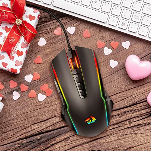 Redragon Gaming Mouse, Wired Gaming Mouse with RGB Backlit, 8000 DPI Adjustable, Mouse with 9 Programmable Macro Buttons & Fire Button, Software Supports DIY Keybinds, M910-K