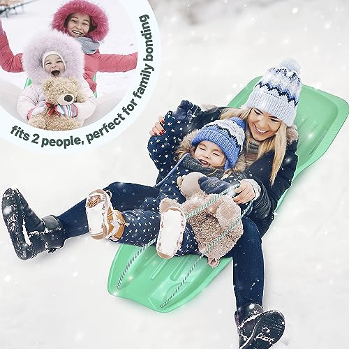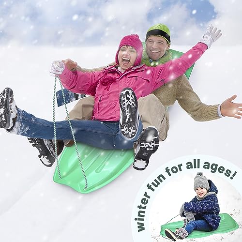 Slippery Racer Downhill Xtreme Flexible Adults and Kids Plastic Toboggan Snow Sled for up to 2 Riders with Pull Rope and Handles, Green
