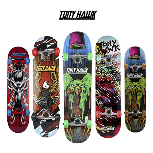 - Tony Hawk Signature Series: The skateboard is suitable for all skill levels and part of the Tony Hawk Signature Skateboard Series. The skateboard provides just the right fit for Cruising, Carving, Free-Style, Downhill, and more while staying stylish the super cool graphics.