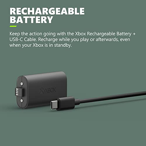 - Keep the action going with the included Xbox Rechargeable Battery Pack and USB-C cable. Recharge while you play or afterwards with a full charge up to 4 hours, and up to 30 hours of battery life per charge.*